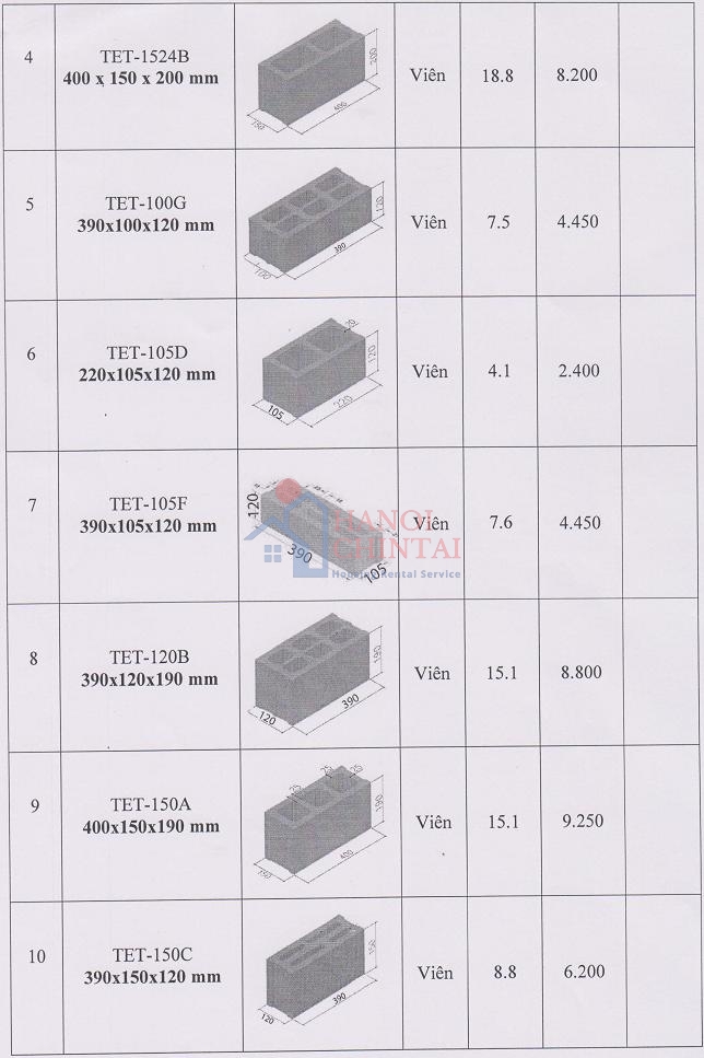 Dưới đây là Giá tham khảo của một số sản phẩm Gạch xi măng cốt liệu của Công ty.
