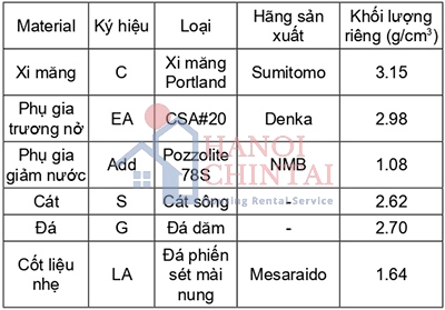 3.1. Ảnh hưởng của phụ gia trương nở và cốt liệu nhẹ