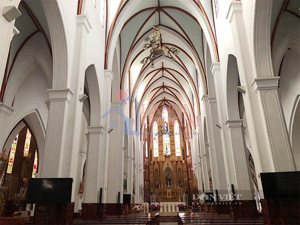 Phong cách thiết kế Gothic bên trong nhà thờ Lớn Hà Nội.