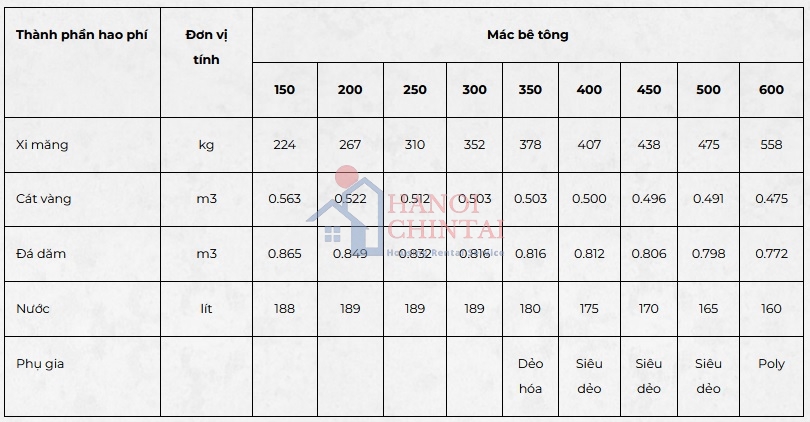 Định mức cấp phối bê tông (Nguồn Tổng hợp)