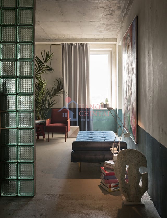 Gạch kính được tận dụng làm vách ngăn trong không gian.