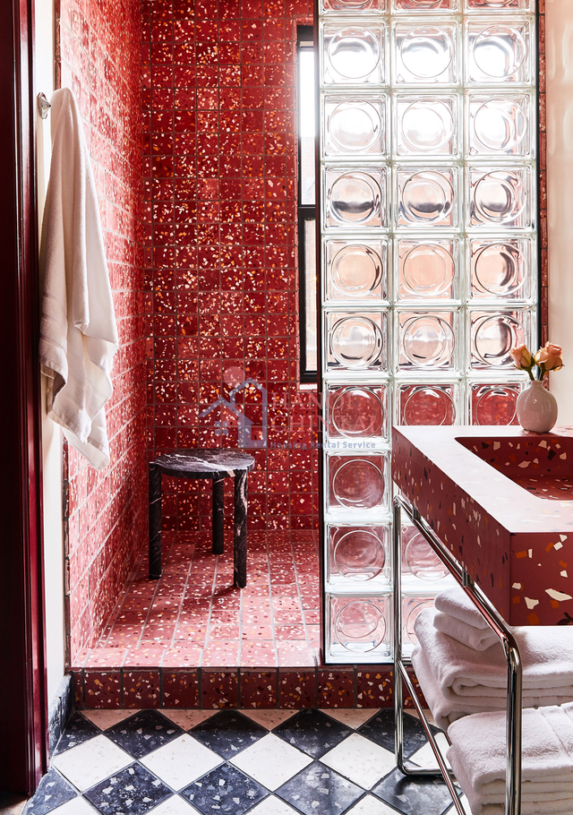 Đồng thời, qua việc sở hữu nhiều mẫu mã về màu sắc và bề mặt, gạch kính còn được tận dụng làm những mảng tường trang trí với quan điểm vẻ đẹp thẩm mỹ đến từ chính vật liệu nguyên bản mà không cần phải qua nhiều bước hoàn thiện.