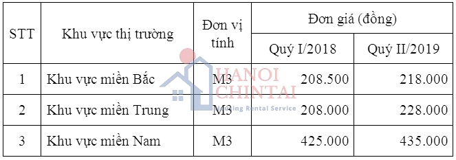 Cụ thể, giá cát quý II của khu vực miền Bắc khoảng 218.000 đồng/m3, tăng 9.500 đồng/m3; khu vực miền Trung khoảng 208.000 đồng/m3 tăng 20.000 đồng/m3; khu vực miền Nam khoảng 435.000 đồng/m3, tăng 10.000 đồng/m3.