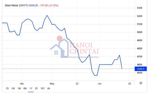 Diễn biến giá thép thanh vằn tương lai tại Trung Quốc. Nguồn: Trading Economics