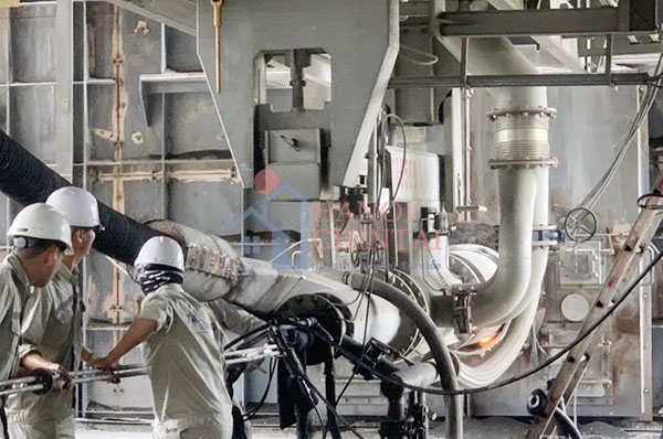Lắp vòi phun chế phẩm vào lò nung clinker.