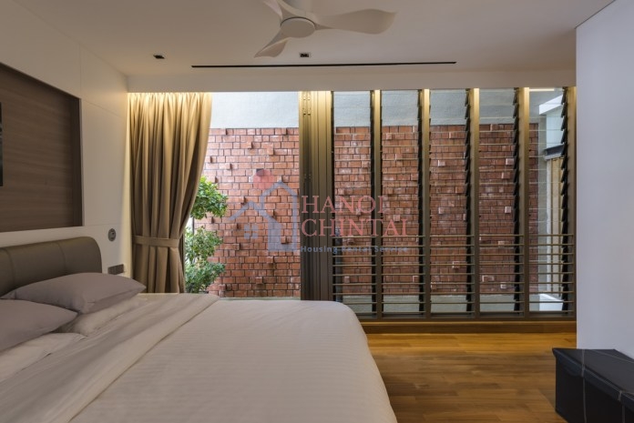 Tất cả các bức tường của các phòng đều xây dựng với tường gạch nung tự nhiên đảm bảo giảm tiếng ồn tối đa cũng như tạo nên vẻ đẹp mắt đồng nhất trong ngôi nhà.