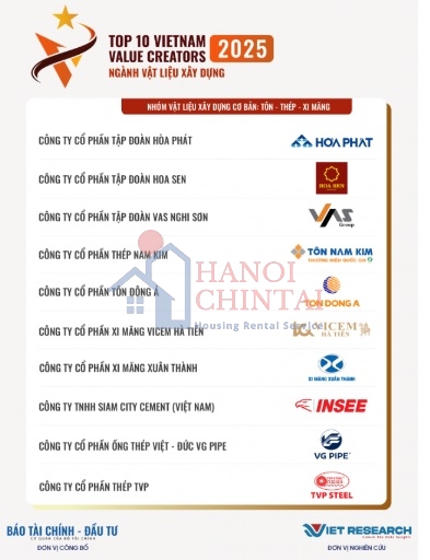 Hòa Phát đứng đầu bảng xếp hạng ngành vật liệu xây dựng (VLXD) cơ bản tôn thép xi măng do Viet Research phối hợp với Báo Tài chính – Đầu tư vừa công bố trong “Top 10 Doanh nghiệp tạo giá trị hàng đầu Việt Nam 2025 – Ngành Vật liệu xây dựng”.