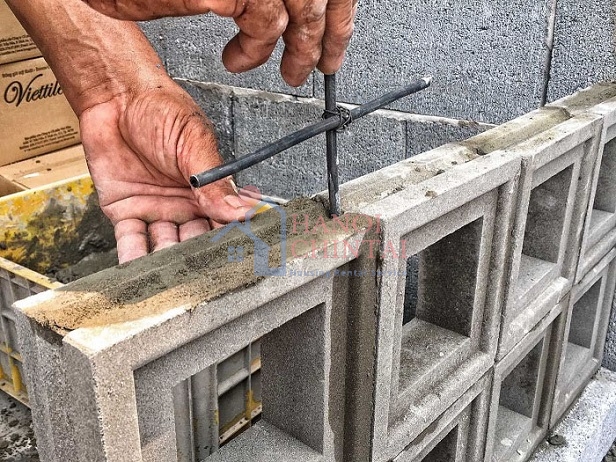 – Tiếp tục trải vữa cho các hàng tiếp theo và dùng bay để miết các mạch vữa, định vị các viên gạch lỗ thông gió đúng theo vị trí. Độ dày mạch vữa khoảng 5 – 10mm hoặc có thể linh động điều chỉnh thêm nhưng ở mức vừa phải tói đa 20mm cho những bức tường có chiều cao hơn 2,5m và chiều rộng lớn hơn 3m.