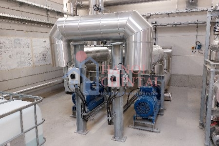Các máy bơm bơm nước vào bộ trao đổi nhiệt và máy sấy bùn thải.