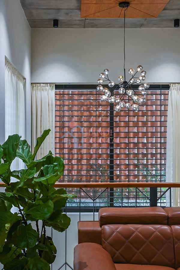 Thiết kế cửa bằng những viên gạch xếp đan xen nhau vừa tạo sự riêng tư cho gia chủ, đồng thời cung cấp cho không gian sinh hoạt chung một lượng ánh sáng và không khí.