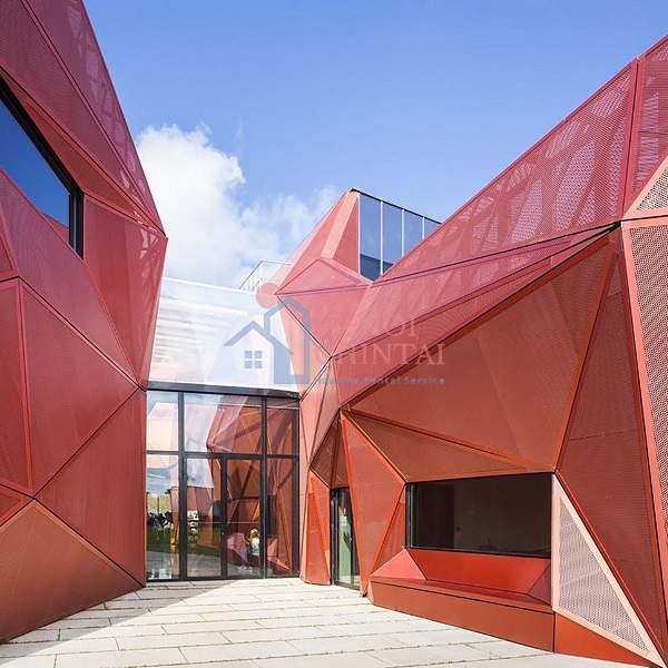 Những tấm kim loại đục lỗ này không nhất thiết phải có dạng lưới thông thường theo tiêu chuẩn mà có thể được thiết kế tùy biến, tùy vào kích thước và hình dạng để tạo nên một loại hoa văn hay điểm nhấn nhằm đánh dấu mặt tiền, thể hiện tính thẩm mỹ cho mỗi tòa nhà.