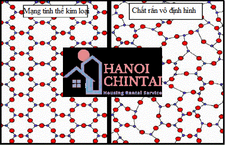 Chất rắn vô định hình có cấu trúc phân tử hỗn loạn và ngẫu nhiên trong khi kim loại có cấu trúc mạng tinh thể rõ ràng.