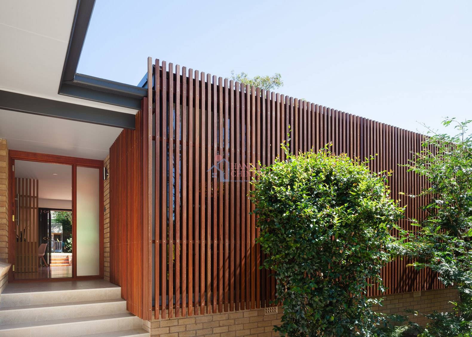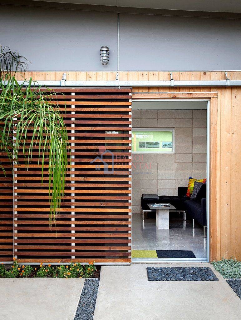 Gia chủ có thể thiết kế tường bao hoặc mặt tiền của ngôi nhà bằng các thanh lam để chắn nắng. Lam gỗ không chỉ làm tăng tính thẩm mỹ mà còn tạo được sự gần gũi, thư giãn cho không gian đằng sau.
