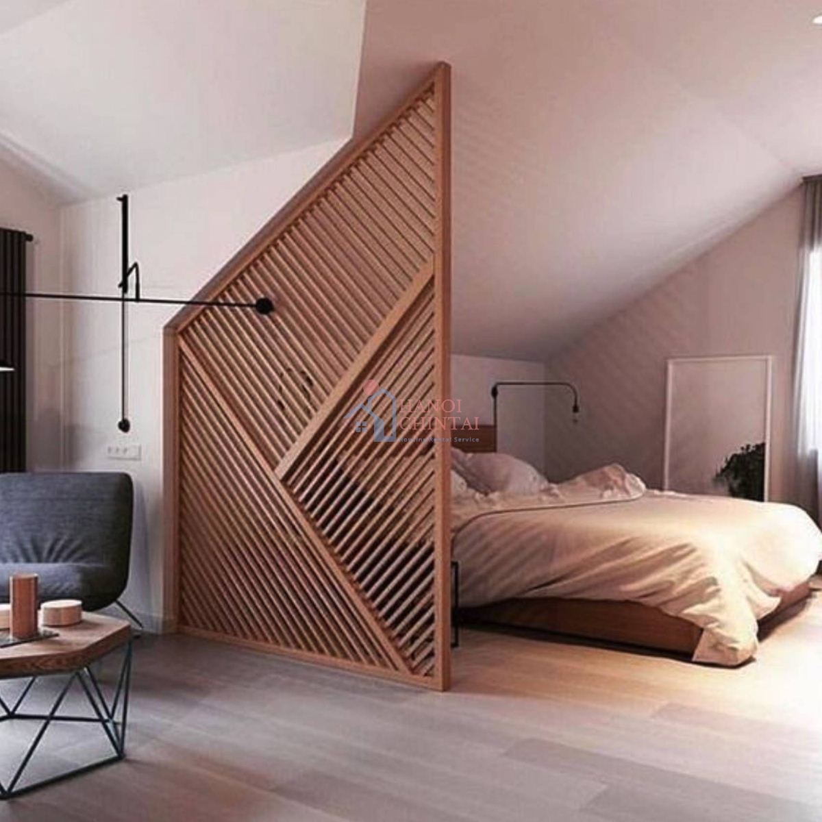 Lam gỗ giúp phân chia không gian giữa các khu vực chức năng riêng biệt.