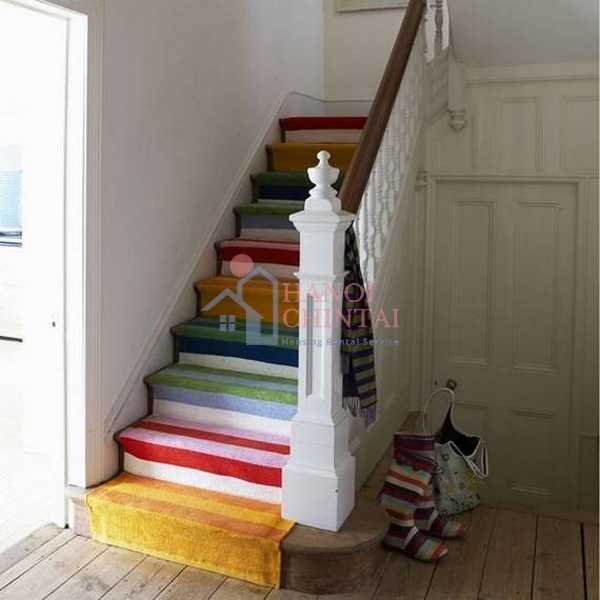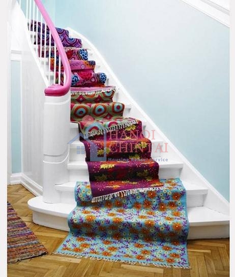 "Tô màu" cho cầu thang bằng thảm nhiều màu sắc đem lại cảm giác vừa tươi mới, vừa ấm áp, gần gũi, không gian ngôi nhà bớt ảm đạm và tươi vui hơn.