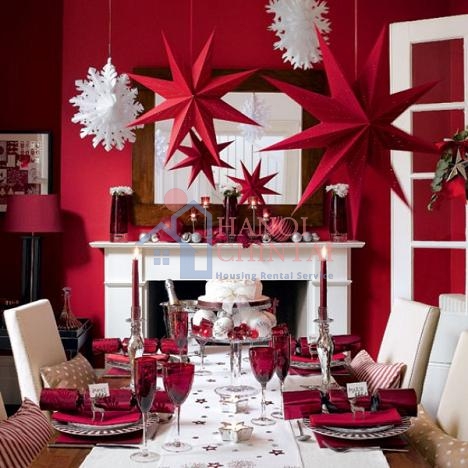 Nếu ngôi nhà bạn sơn màu trắng hoặc đỏ, có thể điểm xuyết thêm những chiếc khăn trải bàn, bông tuyết... cùng những vật dụng với hai tông màu chủ yếu là trắng và đỏ.