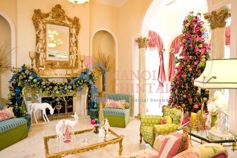 Giáng sinh rực rỡ cho gian nhà có màu vàng nhạt ấm áp. Bạn có thể lựa chọn thêm những bức tượng màu trắng và vật dụng trang trí màu hồng, xanh lá sẽ giúp không gian thêm rực rỡ và sinh động.
