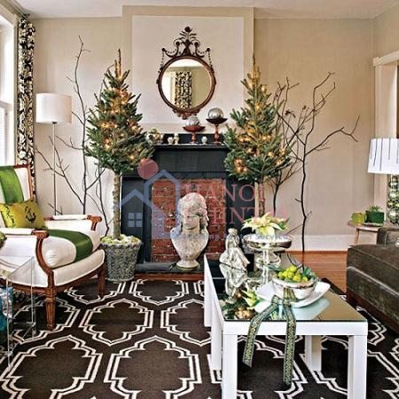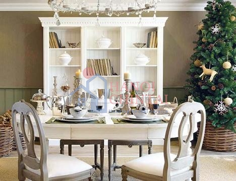 Trang trí Giáng sinh theo phong cách truyền thống với tông trắng, đỏ, xanh trên nền trắng hay xám nhạt. Thiết kế này thích hợp với những gia chủ thích sự nhẹ nhàng, mộc mạc.