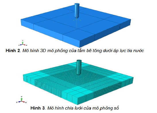 Nghiên cứu thực nghiệm khác của Liu (2021) [9] đã đánh giá ảnh hưởng của kết cấu bê tông có vết nứt trước dưới tác động của tia nước áp lực cao, thông qua máy ghi hình tốc độ cao. Ngoài ra, Bodnárová và cộng sự (2011) [10] đã nhấn mạnh những lợi thế của tia nước tốc độ cao, bao gồm cường độ lao động giảm và giảm ô nhiễm môi trường so với các phương pháp cơ học truyền thống. Mặc dù đã đạt được nhiều kết quả khả quan, vẫn còn nhiều khoảng trống trong việc phân tích ảnh hưởng của kết cấu bê tông dưới tia nước áp lực cao.