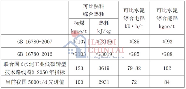 Kể từ những năm 1980, trình độ công nghệ xi măng của Trung Quốc không ngừng được cải thiện và mức tiêu thụ năng lượng trên một đơn vị sản phẩm xi măng liên tục giảm. Bảng dưới đây dựa trên GB16780 "Giới hạn tiêu thụ năng lượng trên mỗi đơn vị sản phẩm xi măng" và các tính toán sử dụng giá trị tiêu thụ năng lượng của "clinker tương đương" và "xi măng tương đương" là tương đương nhau. Do đó, giá trị phát thải CO2 của clinker và xi măng trong bài này được tính toán dựa trên nguyên tắc này.