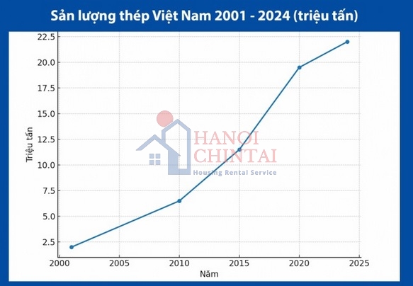 Sản lượng thép Việt Nam giai đoạn 2001–2024
