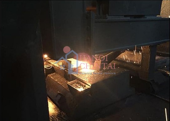 Hộp kết tinh đúc phôi thép khi hoạt động.