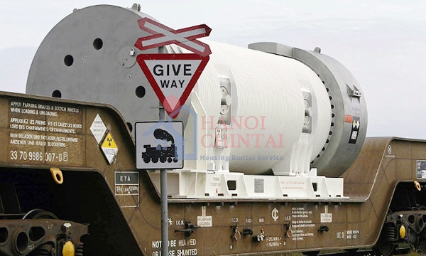 Chất thải hạt nhân được vận chuyển bằng tàu hỏa đến nơi xử lý.