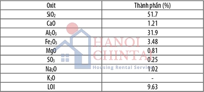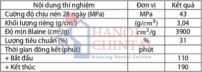 Bảng 1. Các chỉ tiêu cơ lý của Xi măng Insee PCB40