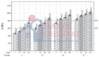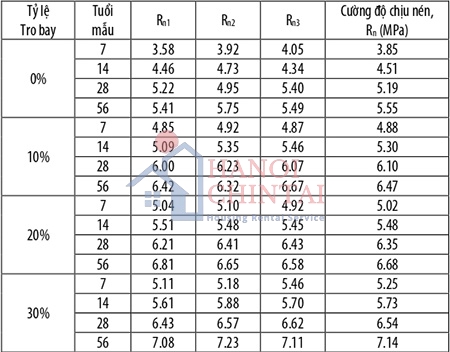Kết quả về cường độ chịu nén (Rn) ở tuổi 7, 14, 28, 56 ngày được thể hiện ở Bảng 4.