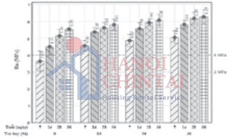 Cường độ chịu nén của cấp phối gia cố xi măng - tro bay cũng được cải thiện hơn cấp phối xỉ thép - cát mịn gia cố xi măng với tỷ lệ 4% [14]. So với cấp phối xỉ thép - đá mi gia cố xi măng 4% thì cường độ chịu nén ở 14 ngày tuổi lại nhỏ hơn khoảng 40%.