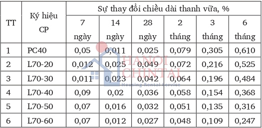 Nghiên cứu ảnh hưởng của xỉ phốt pho đến độ nở trong dung dịch sulfat của chất kết dính được trình bày tại Bảng 3.2.