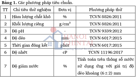Trong nghiên cứu này sử dụng các phương pháp tiêu chuẩn được trình bày trong Bảng 1.