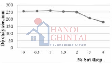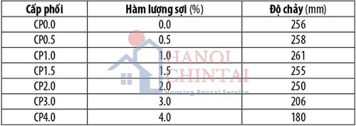 Bảng 1. Ảnh hưởng của hàm lượng sợi thép đến độ chảy xoè của hỗn hợp UHPC