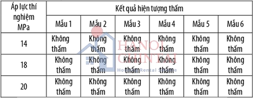 Kết quả trong Bảng 7 thể hiện UHPC có thể chịu được áp lực thấm trên 20 MPa. Cấp chống thấm đạt được >20 MPa, cho thấy bê tông UHPC có thể chống xâm nhập Clo rất tốt, có nghĩa là khả năng chống ăn mòn Clo rất cao.