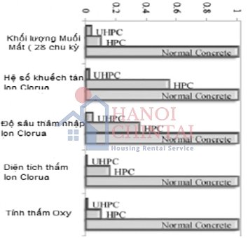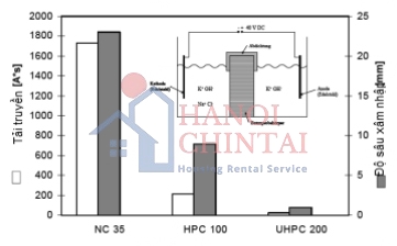 Hình 3. Khả năng chống ăn mòn Clo của UHPC so với NC và HPC (TLTK [3]).