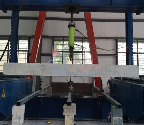 Tiến hành thí nghiệm uốn dầm để kiểm tra khả năng chịu lực của dầm bê tông cốt thép. Ảnh: Nhân vật cung cấp.