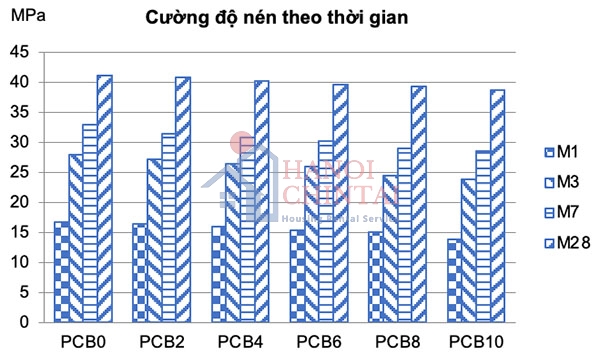 - Mẫu PCB 2, PCB 4 có cường độ 28 ngày trên 40 MPa.