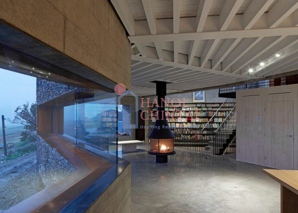 Nếu bên ngoài nhà trông có vẻ khá hoang sơ và hoàn toàn chìm lẫn vào thiên nhiên thì nội thất bên trong lại khá hiện đại. Bê tông được đánh bóng sử dụng để ốp sàn và tường nhà, nội thất hiện đại, tối giản tạo ra không gian mở.