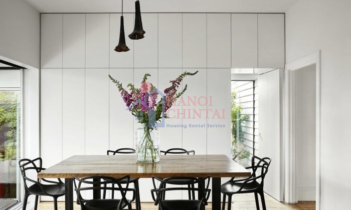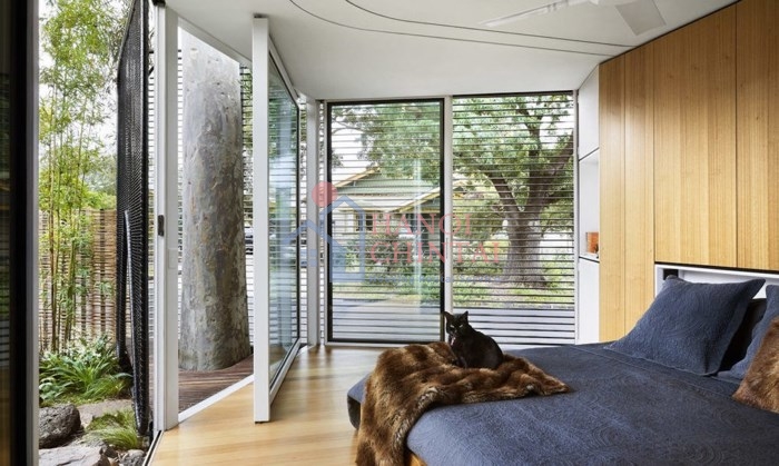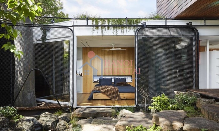 Không gian này sử dụng những tấm chắn có thể dịch chuyển, vừa có đủ ánh sáng cho không gian.