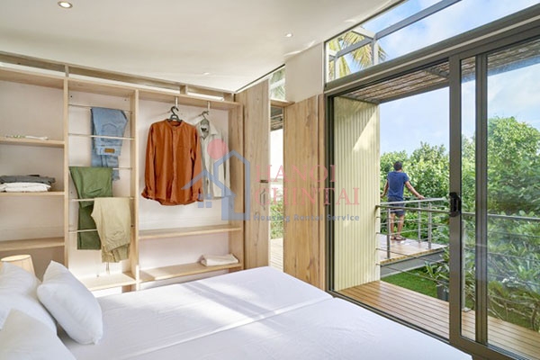 Ngôi nhà có kết cấu nhẹ nhàng đơn giản kết hợp với nội thất tối thiểu, không gian sạch sẽ thoáng đãng, tập trung vào những yếu tố tự nhiên như nắng, gió, ánh sáng tự nhiên và cây xanh.