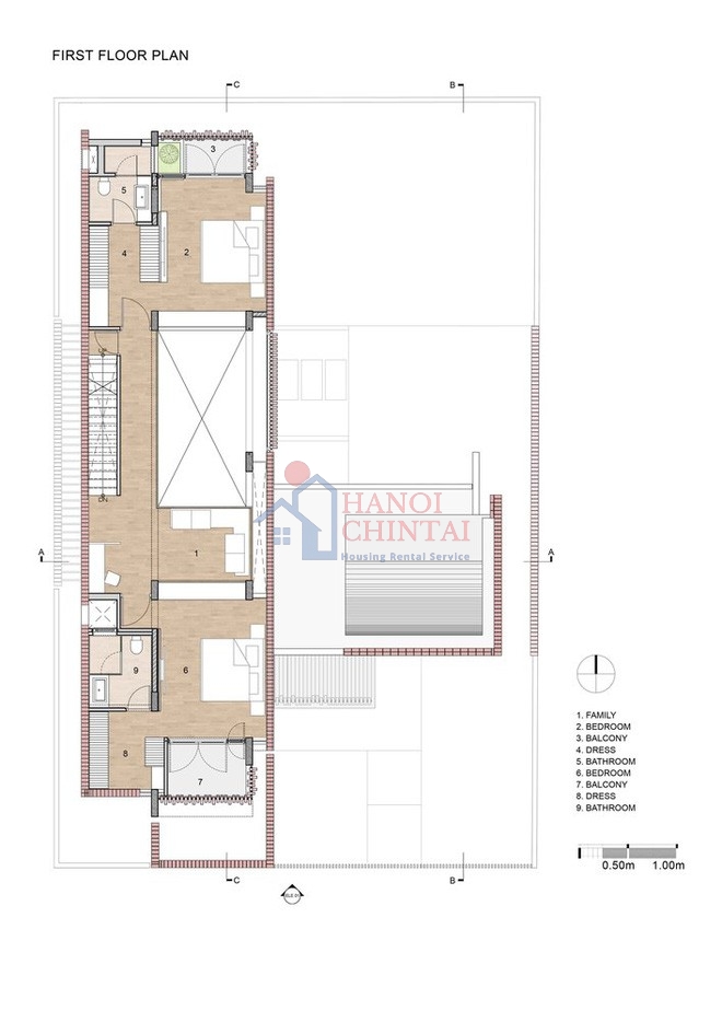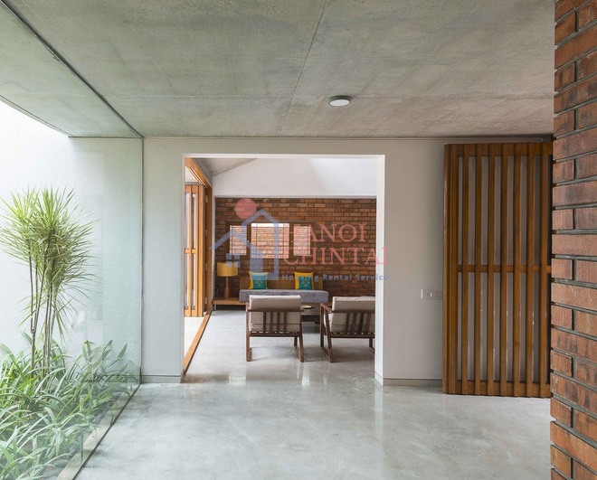Chất liệu gỗ và gạch nung đem lại sự gần gũi, đơn giản nhưng vẫn tinh tế. Những vật liệu tưởng như không mới nhưng lại được khai thác triệt để để tạo nên một không gian sống linh hoạt.
