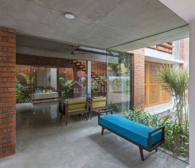 Gạch, thép nhẹ và kính được kết hợp lại, tạo nên những khối nổi cho ngôi nhà. Không chỉ đơn giản mà còn giúp thoát nhiệt nhanh khi tắt nắng.