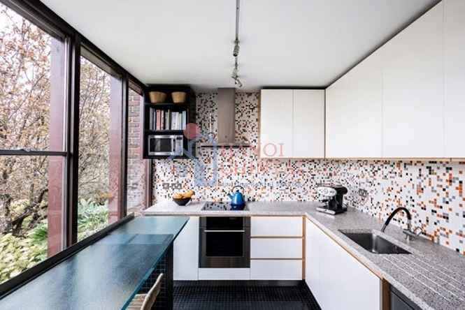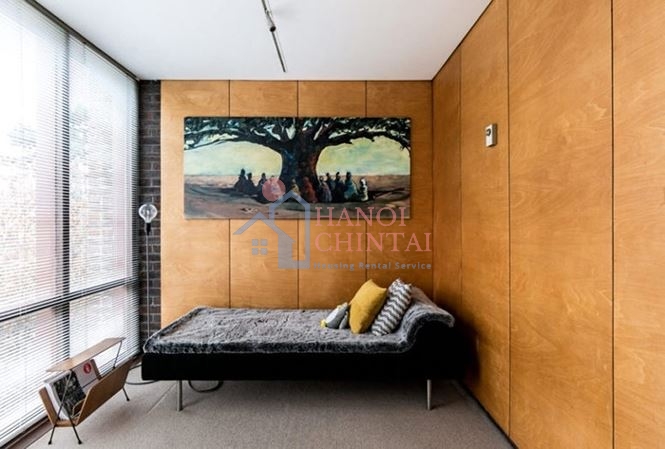 Ngôi nhà này được xây dựng vào cuối những năm 1960, tuy nhiên cho đến nay, không gian trong căn hộ không hề cũ kỹ, lỗi thời. Tường gỗ trong tạo nên sự ấm áp và tương phản cho không gian của căn hộ . Ngoài ra, nhờ có những bức tường kính lớn, căn hộ có được tầm nhìn tuyệt vời ra bên ngoài.
