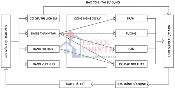 Hình 3. Sơ đồ tái sử dụng vật liệu gỗ vào thực tiễn.