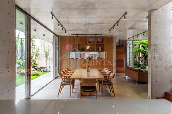 Trong ngôi nhà này, khu vườn trở thành một phần không thể thiếu, kết hợp với vật liệu bê tông tạo nên ý tưởng phát triển cho ngôi nhà. Tất cả đều được cân nhắc kỹ lưỡng để đảm bảo ngôi nhà có thể sử dụng lâu dài mà không cần phải sửa chửa, thay mới.