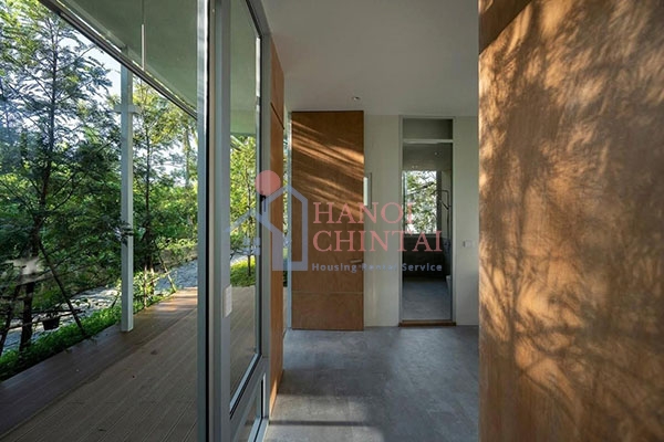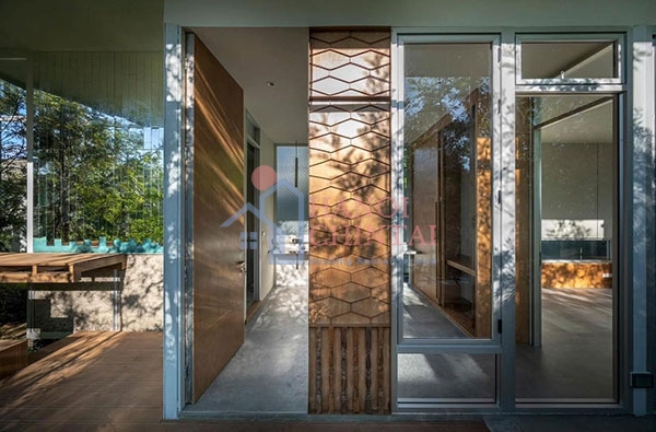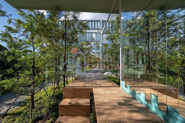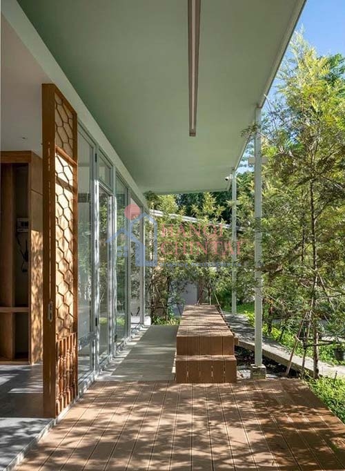 Việc sử dụng chất liệu gỗ và kính tạo nên một không gian ấm cúng, gần gũi với thiên nhiên đồng thời mang đến vẻ đẹp hiện đại, sang trọng.