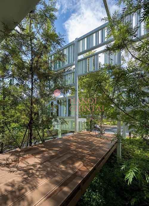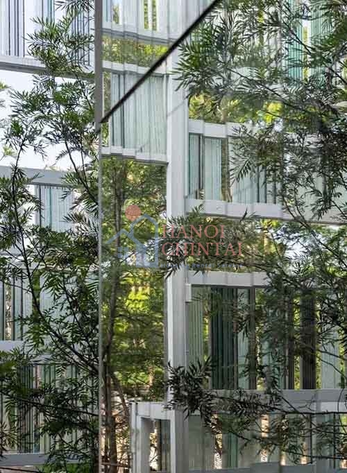 Lớp kính thông minh này như một tấm lá chắn xanh, vừa đón ánh sáng tự nhiên vừa ngăn chặn sức nóng gay gắt, mang đến không gian sống mát mẻ và thoải mái. Không chỉ vậy, để góp phần bảo vệ môi trường, dự án còn tận dụng tối đa các nguồn lực sẵn có. Kính thừa từ một nhà máy đã được tái sử dụng, khéo léo lồng ghép vào thiết kế, vừa tiết kiệm chi phí vừa giảm thiểu lượng rác thải.