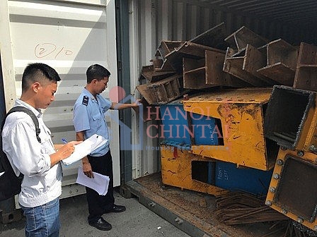 Cán bộ Hải quan Hải Phòng kiểm tra lô hàng phếp liệu sắt thép nhập khẩu.