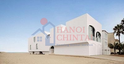 Căn nhà nhìn phía ngoài giống hình hộp chữ nhật.
