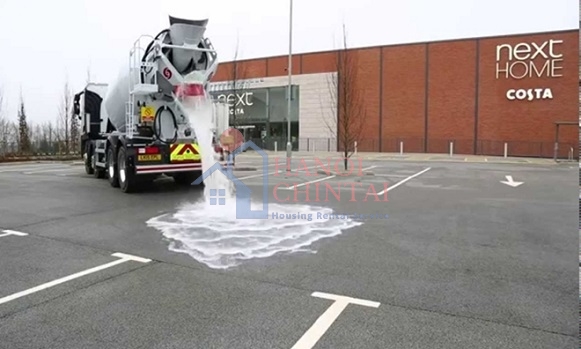 Năm 2015, Lafarge Tarmac, công ty vật liệu xây dựng tại Anh, giới thiệu loại bê tông thấm nước gọi là Topmix có khả năng hút 4.000 lít nước trong một phút. Nó được thiết kế một lớp phủ siêu thấm, cho phép nước thấm qua bề mặt nhanh chóng và tránh bị ứ đọng. Bê tông thấm nước không chỉ giúp đối phó với tình trạng ngập lụt, mà còn giảm nhiệt do vật liệu rải nhựa đường sinh ra khi nắng nóng. Đối với những khu vực dễ bị ngập, phương pháp này có thể thay thế bê tông thông thường và giải quyết vấn đề một cách hiệu quả. Ảnh: Mirror.